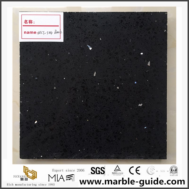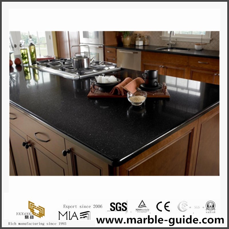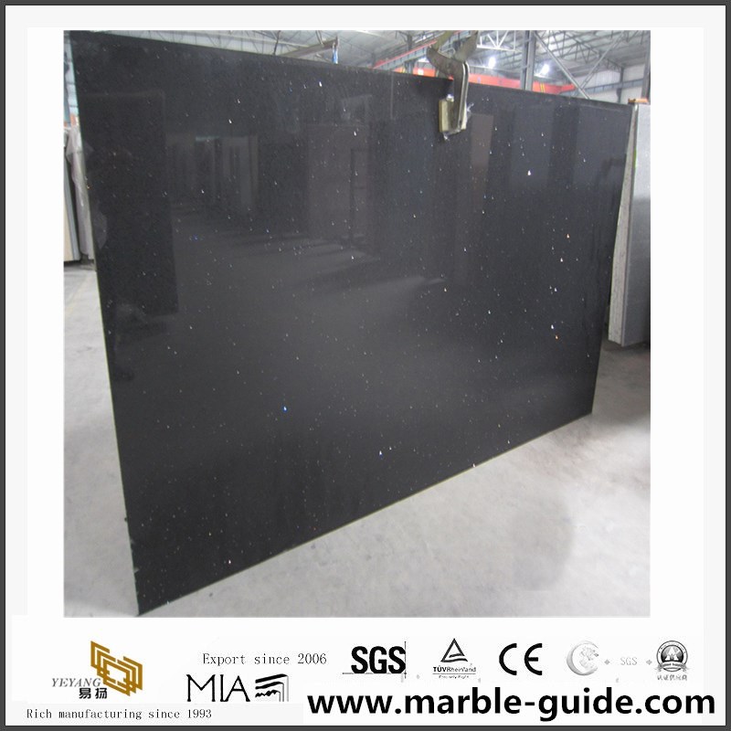 The black quartz kitchen countertops is means this product mateiral is flicker series quartz stone.The product background is back color,
