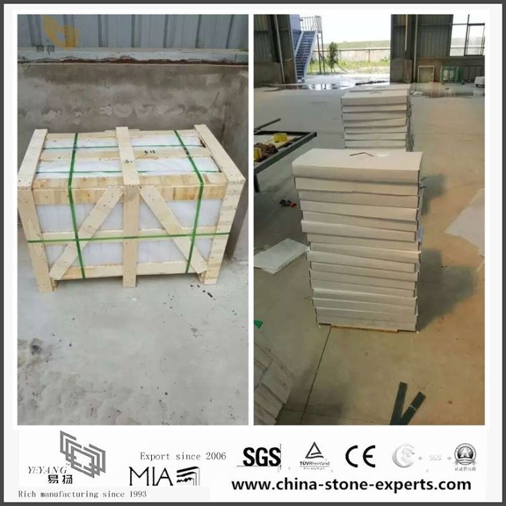 Remark | The shape of vanity tops are available for straight front, bowed front, banjo front. Bathroom vanity top with facial slot cutout, with straight or arc apron, back splash, soap dish, toilet tissue cutout, or produced with your detail drawing, sink clips are also preholed on your request. |