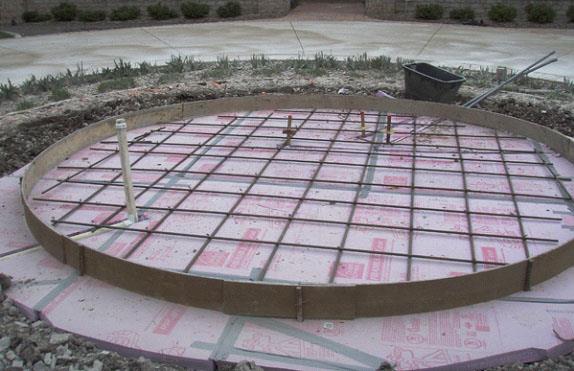 Here’s an example of a typical fountain slab installation before the cement has been poured: